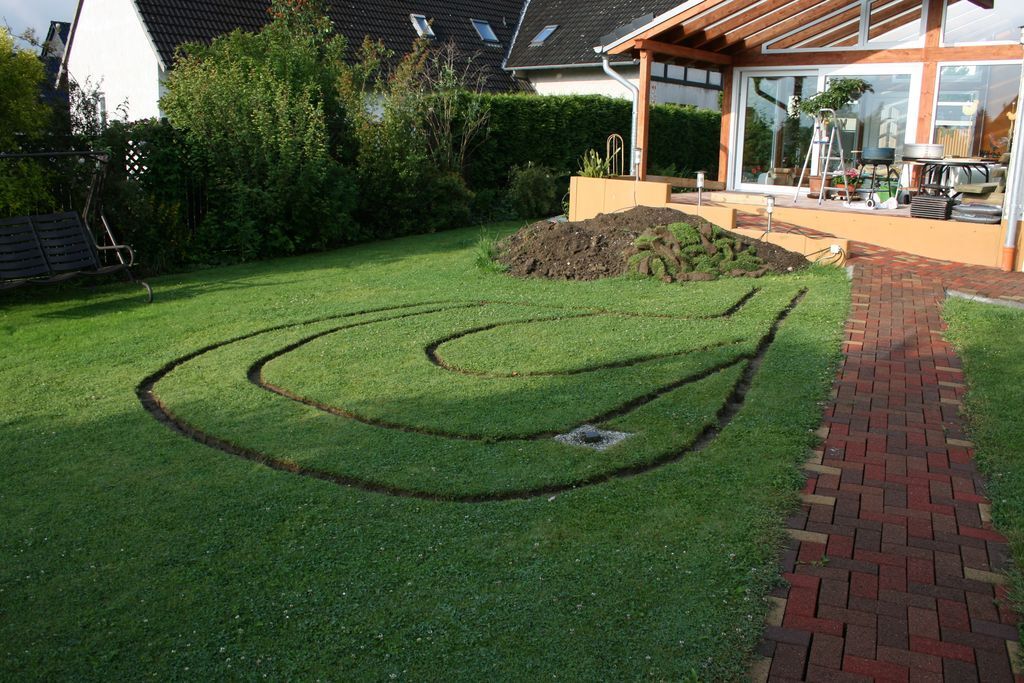 Nun könnt Ihr von der Grundskizze bis zur Fertigstellung des Teiches die einzelnen Schritte sehen.