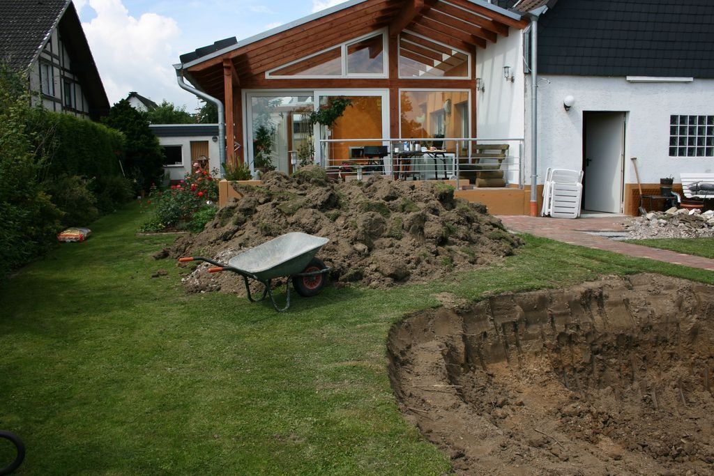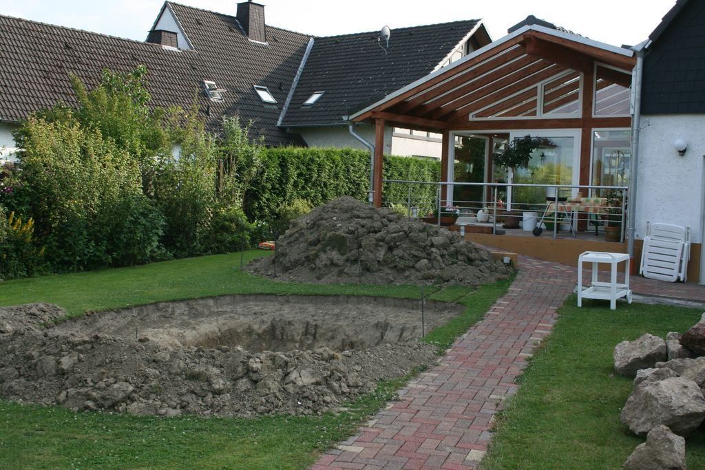 Im Jahre 2010 hatten wir die Idee, nachdem unser Wintergarten mit Gartenrampe fertiggestellt war, dass es doch schön wäre, einen Gartenteich mit Fischen anzulegen.