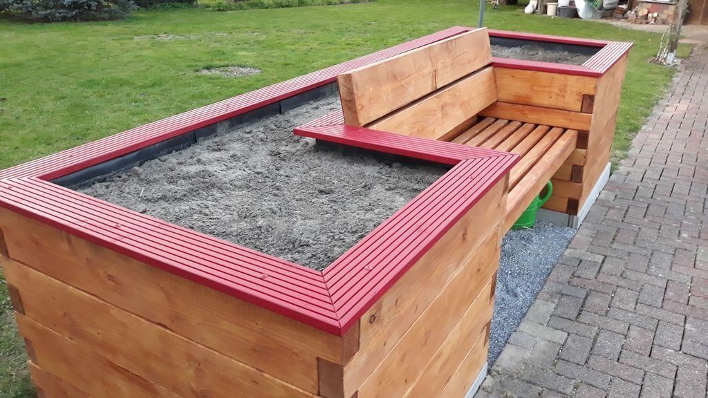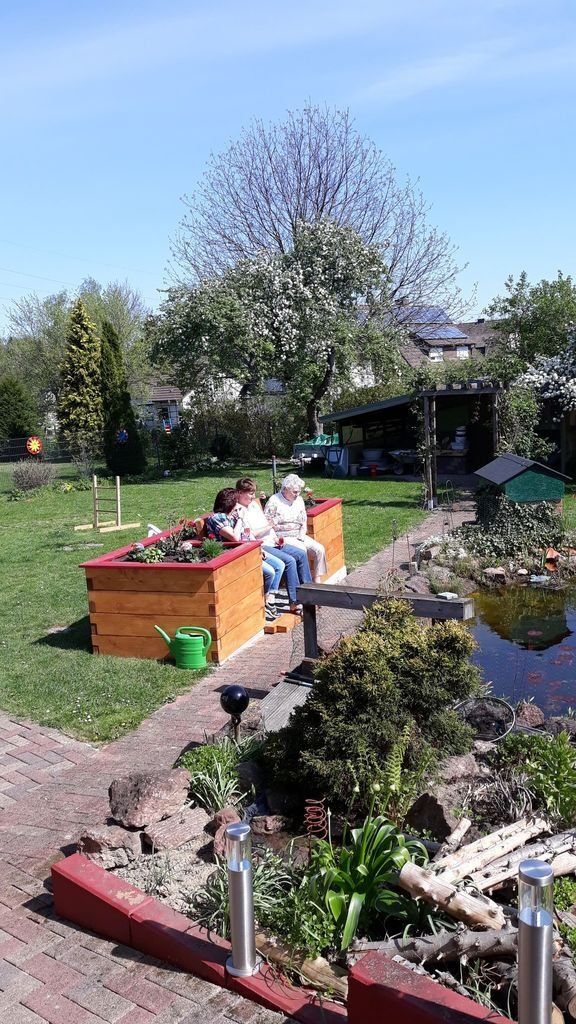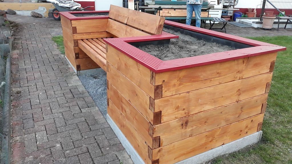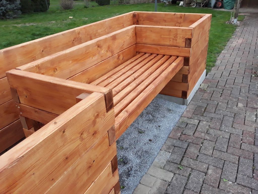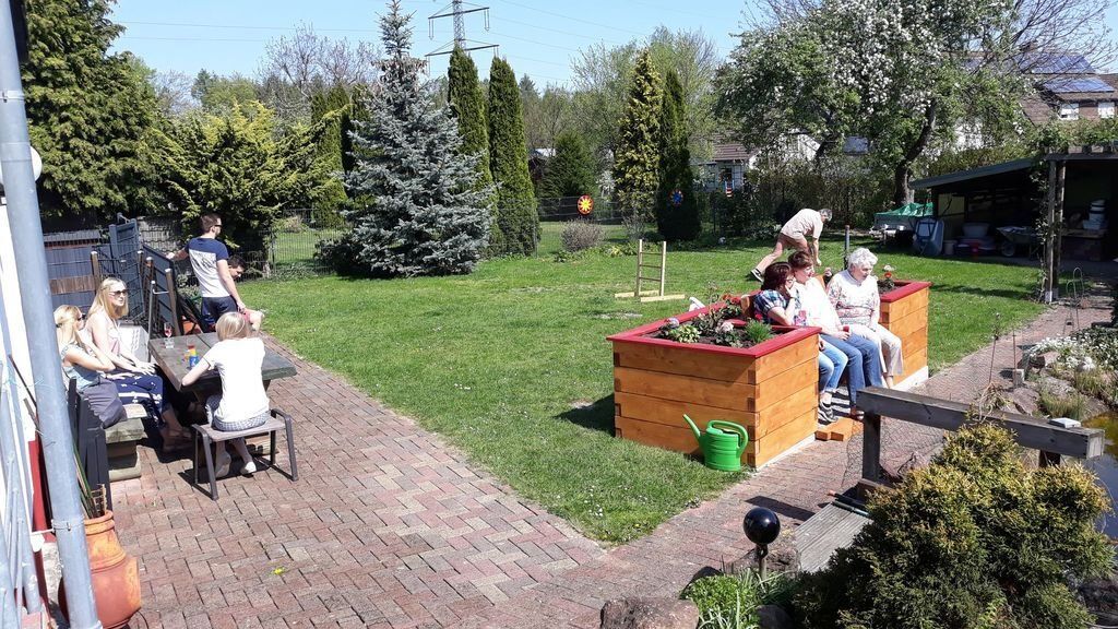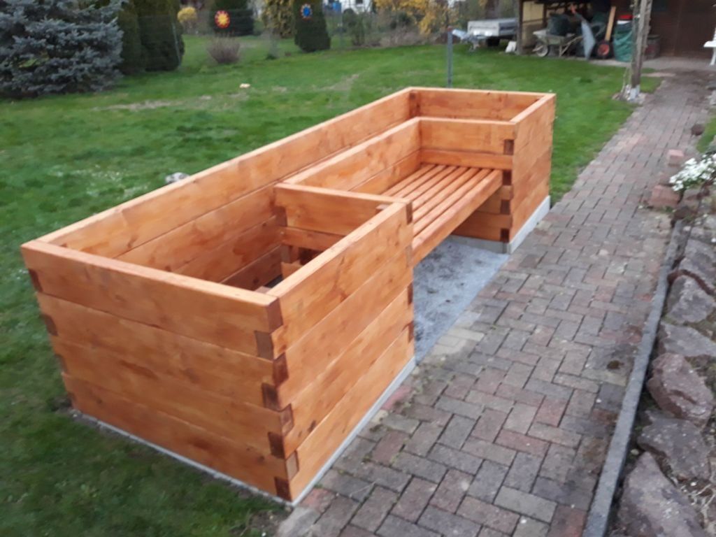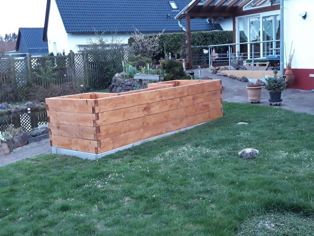 Birgits Wunsch nach einem Hochbeet konnte ich ja nicht einfach so ignorieren und so entstand unter Mitarbeit von Freund Uwe ein Hochbeet nach unseren Maßen. Es musste ja mal was Besonderes sein und so wurde gleich eine Sitzbank zum Gartenteich hin eingebaut.