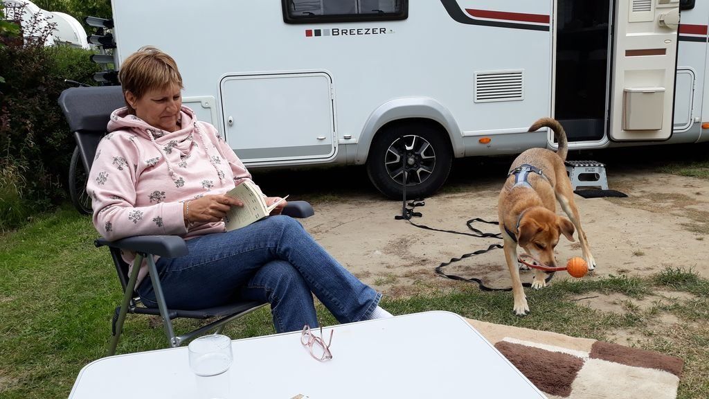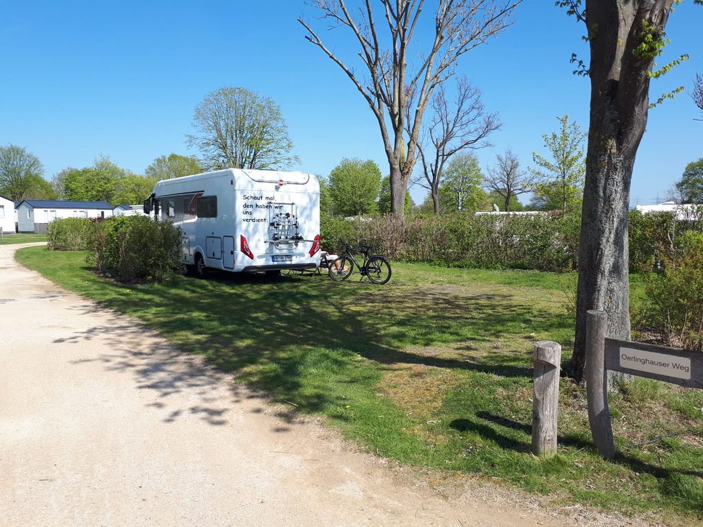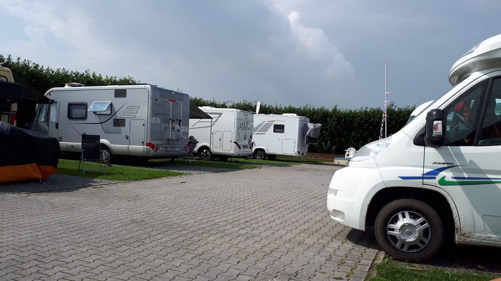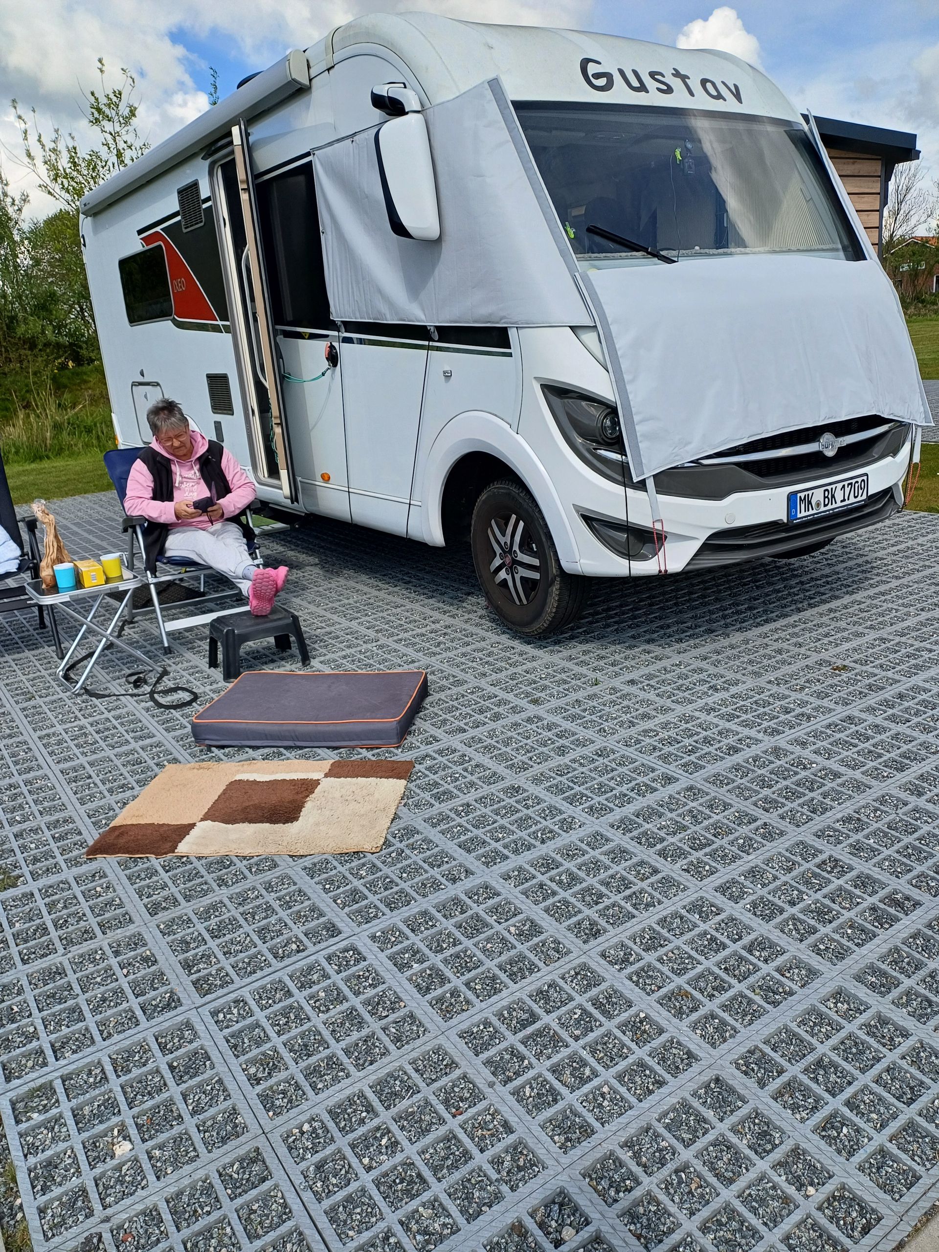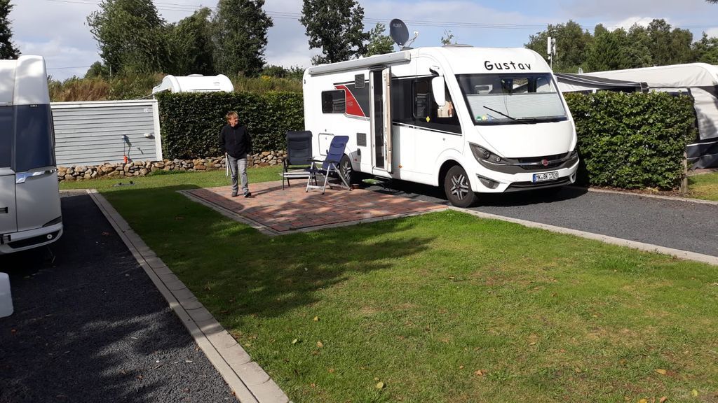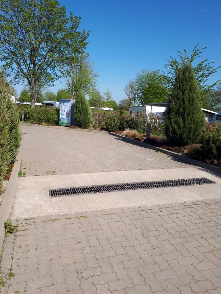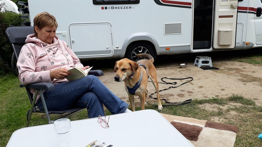 Hier handelt es sich um einen im Jahr 2023 neu eröffneten Campingplatz in der Nähe von Wittmund. Der von uns gebuchte Stellplatz hatte ein eigenes Sanitärgebäude mit Toilette, Dusche und Spüle/Waschtisch. Hier hat es nicht nur uns, sondern auch unserem Paul sehr gut gefallen. Teilweise ist der Platz noch im Bau, auf er gegenüberliegenden Seeseite waren große Baugeräte (Bagger, Raupen usw.) dabei, noch mehr komfortable Stellplätze für Wohnmobile, Wohnwagen und Zelte zu befestigen.