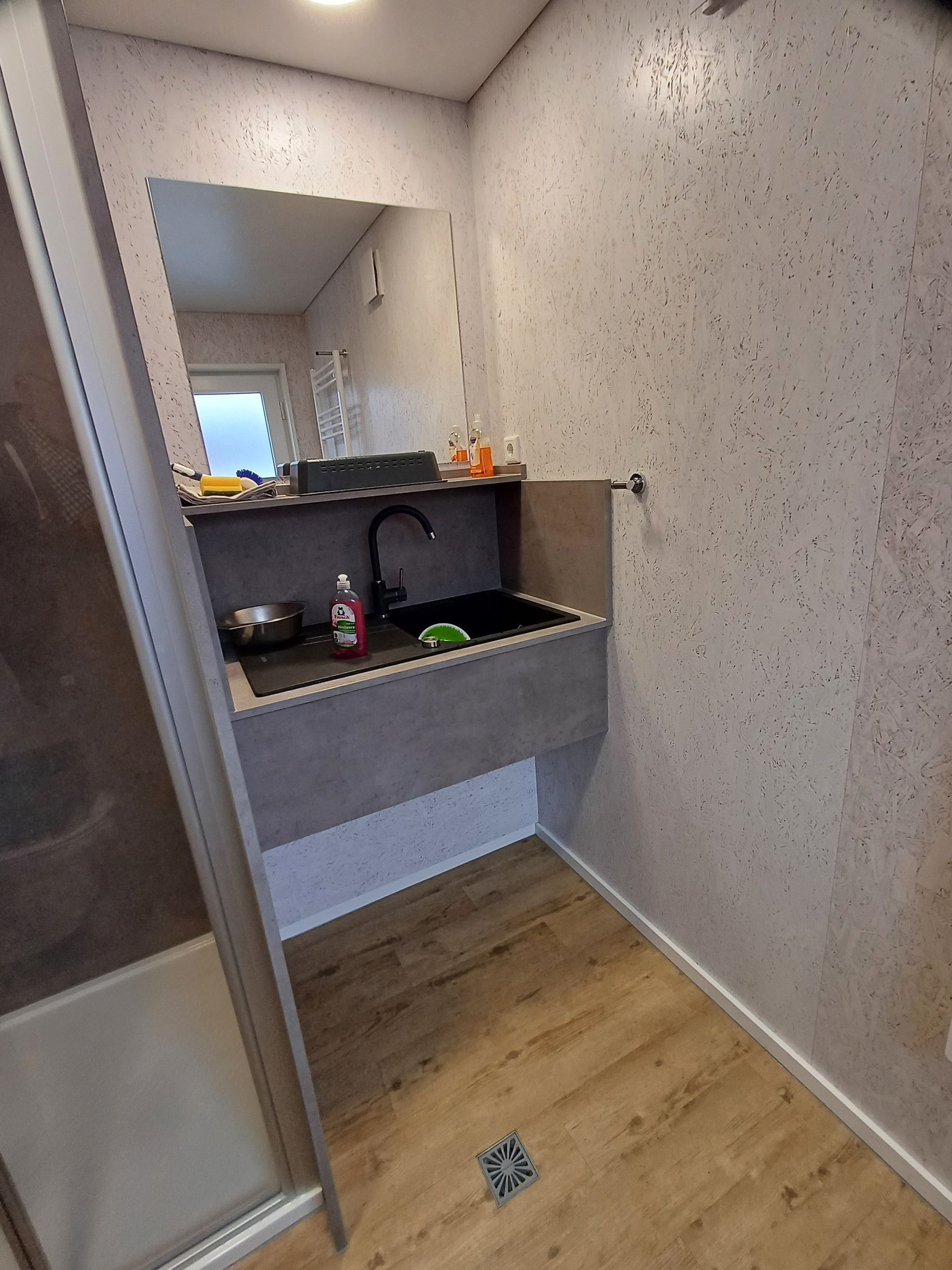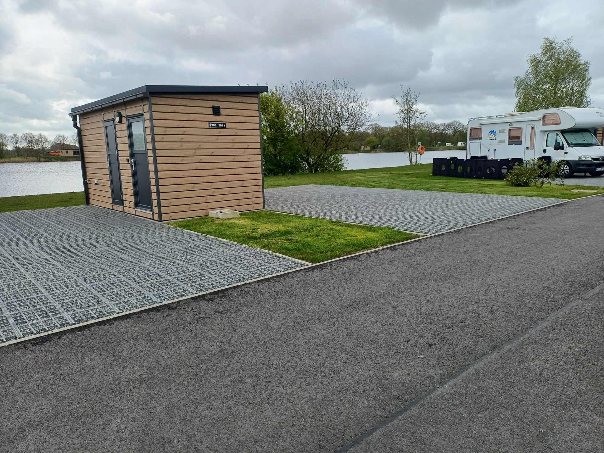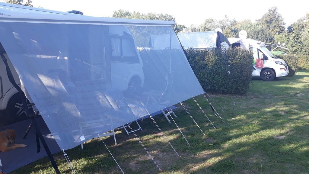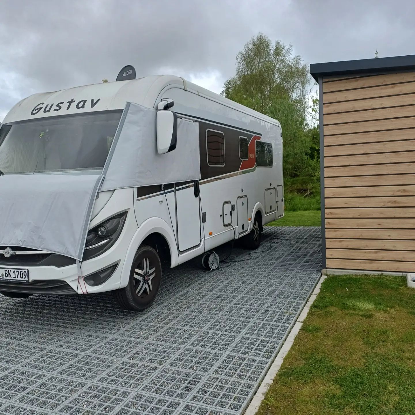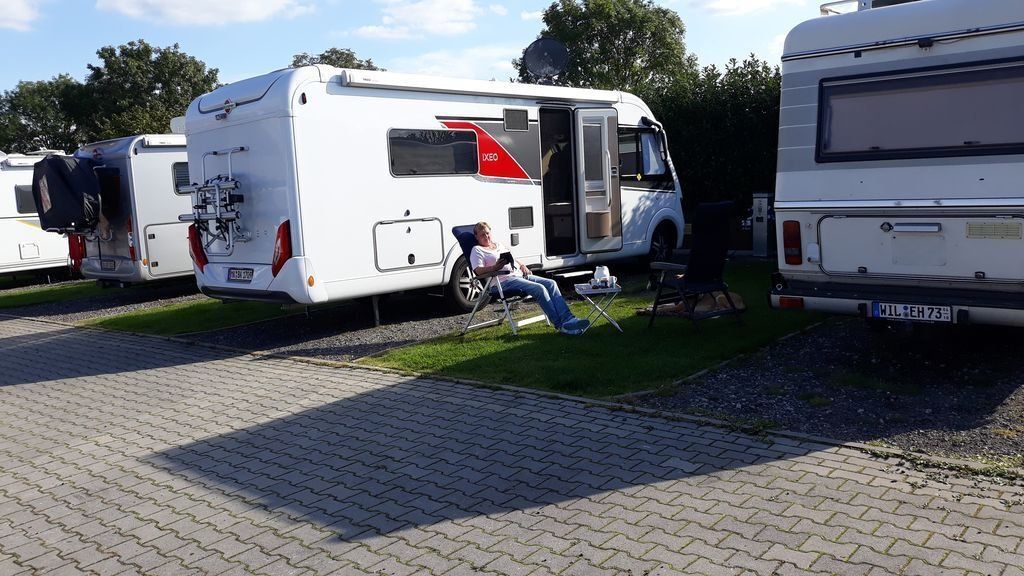 Hier handelt es sich um einen im Jahr 2023 neu eröffneten Campingplatz in der Nähe von Wittmund. Der von uns gebuchte Stellplatz hatte ein eigenes Sanitärgebäude mit Toilette, Dusche und Spüle/Waschtisch. Hier hat es nicht nur uns, sondern auch unserem Paul sehr gut gefallen. Teilweise ist der Platz noch im Bau, auf er gegenüberliegenden Seeseite waren große Baugeräte (Bagger, Raupen usw.) dabei, noch mehr komfortable Stellplätze für Wohnmobile, Wohnwagen und Zelte zu befestigen.